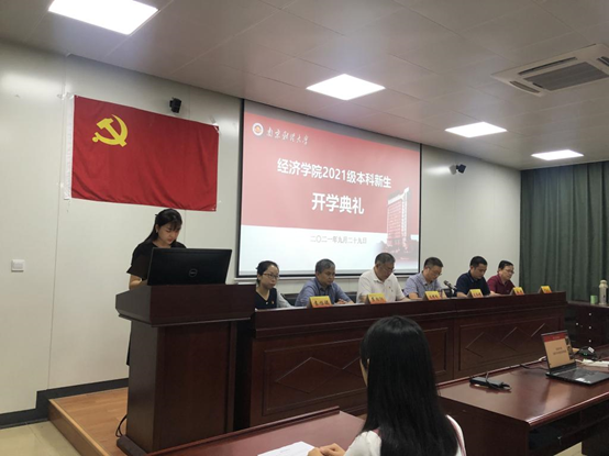 在校生代表经统1901班陆丽珏同学对小萌新们的到来表示热烈欢迎。并分享了自身对大学生活的几点感悟:潜心治学、互助友善、开拓创新。“恰同学少年,风华正茂;书生意气,挥斥方遒”,鼓励学弟学妹们不负青春韶华,争做新时代文明大学生。新生代表2106班王丹丹同学发言,立志秉承校训,做到“志存高远,树立明确目标”“向阳而生,心怀梦想”“不忘初心,砥砺前行”,成为推动新时代前进和发展的蓬勃力量!