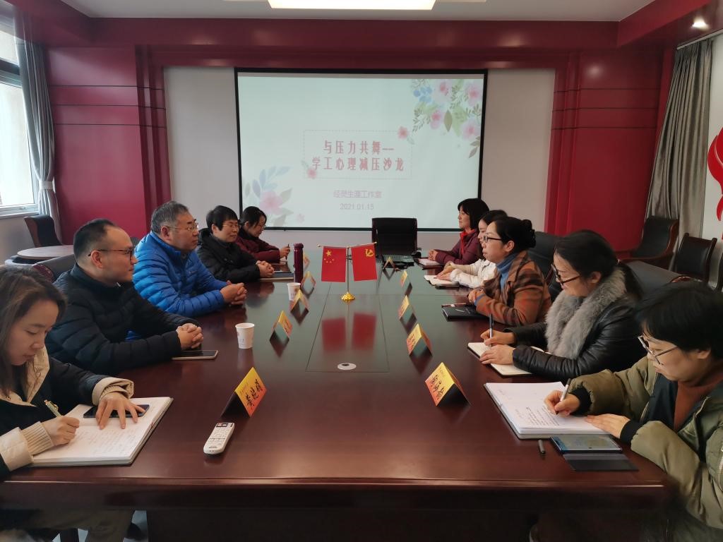 1月15日下午,球盟会qmh网址与压力共舞--学工心理减压沙龙在仙林校区德经楼329会议室顺利开展。活动邀请校学生处副处长赵亮、心理中心高剑婷担任主讲嘉宾。学院党委书记陈耀辉、副书记袁怡琨及全体学工老师参加了此次活动。