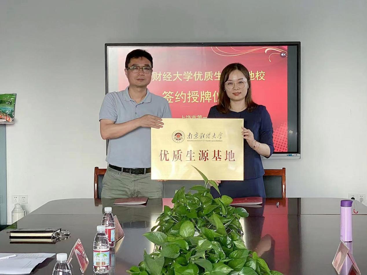 随后两校共同签订了优质生源基地共建协议,贾亦璞副书记授予上饶市第一中学优质生源基地铜牌。
