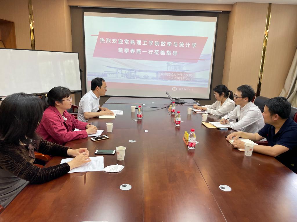 5月25日下午,常熟理工学院数学与统计学院季春燕副院长、崔召磊主任、廖远甦主任一行来qmh官网调研交流,座谈会在qmh官网323会议室举行。qmh官网副院长刘小峰教授、统计系主任程恭品副教授、统计系黄莉芳副教授、学工秘书梁少颖参加座谈会。座谈会由qmh官网刘小峰副院长主持。