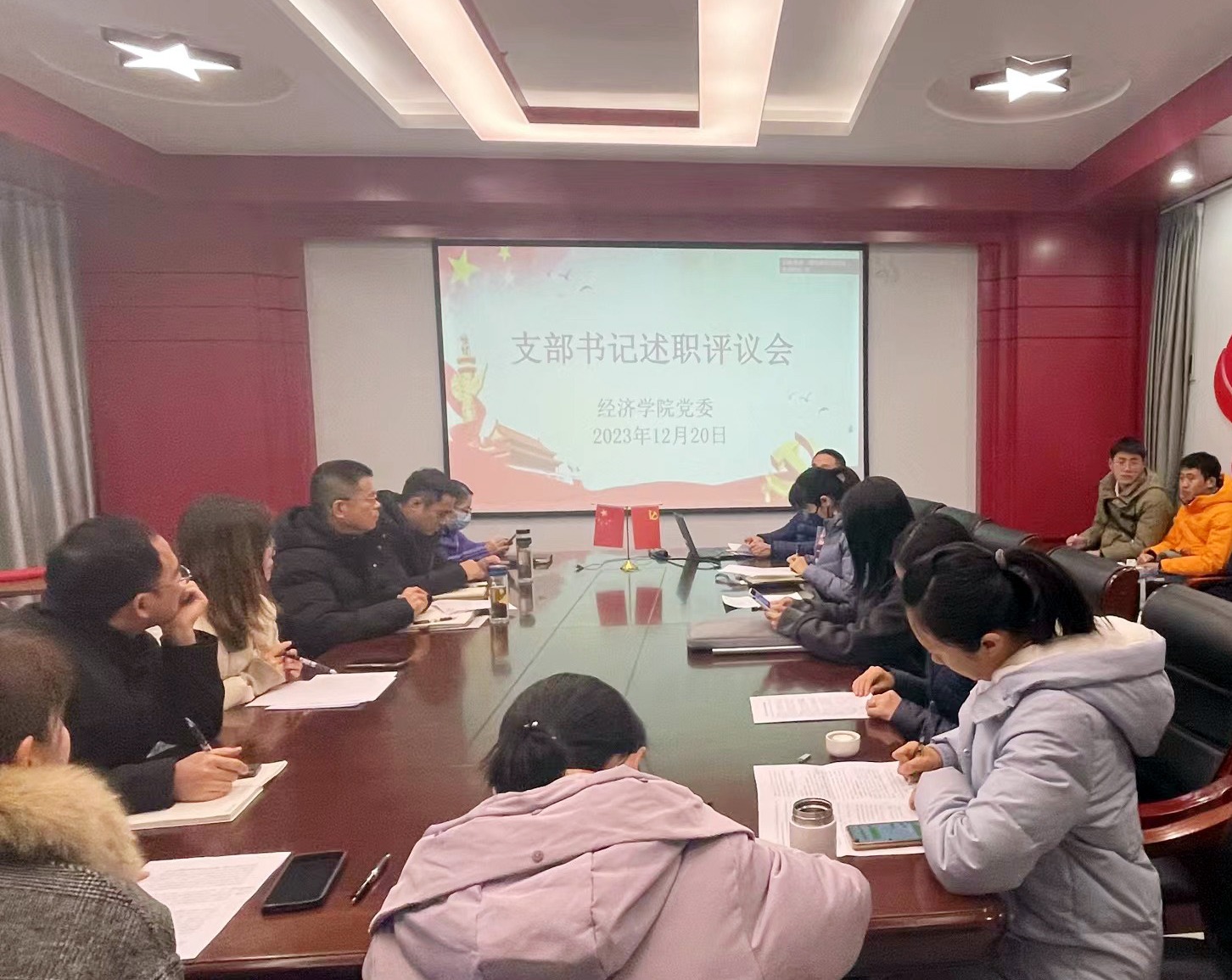 为深入学习贯彻习近平新时代中国特色社会主义思想和党的二十大精神,推进学院党建与事业发展“一融双高”,增强基层党组织政治功能和组织功能,根据校党委组织部有关部署要求,2023年12月22日下午,球盟会qmh网址党委在德经楼329会议室组织召开基层党支部书记抓党建述职评议工作会议,院党委书记张圣兵同志、副书记贾亦璞同志、副院长韩中同志、各党支部书记、党支部委员代表以及群众代表参加了此次会议,会议由贾亦璞同志主持。