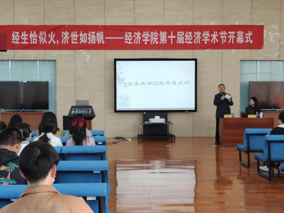 3月29日下午,qmh官网于仙林校区图书馆世界之窗举行“经生恰似火,济世如扬帆”第十届经济学术节开幕式,引领同学们探寻经济学的奥秘。学院党委书记张圣兵、经济系教师戴嘉、2023级本科生参加开幕式。
