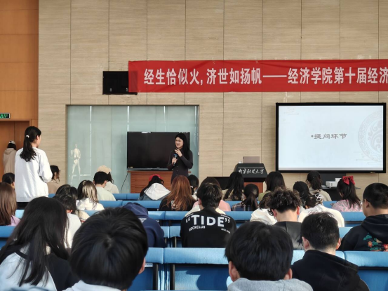 开幕式后,戴嘉老师作了题为“经济学的研究与出路”的讲座。她结合业界、学术界及工作领域的现状,从经济学科的就业方向、本科阶段学习重点以及如何做好科研工作三个方面深入阐述,为同学们未来的职业道路提供新思路。戴老师强调了科研“四部曲”在论文写作中的重要作用,鼓励同学们勇敢尝试、积极写作,不断挑战自我,实现学术突破。