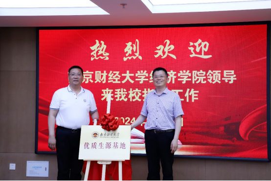 张圣兵书则对qmh球盟会亚博基本情况、学科特色、学生发展等情况进行介绍,特别强调了南财在人才培养方面做出的创新机制和举措,希望以此次“优质生源基地”共建挂牌为契机,进一步加强合作与联系,开展师生互访交流、招生咨询与宣传、科普讲座进中学等活动,为社会培养更多高素质创新型人才。