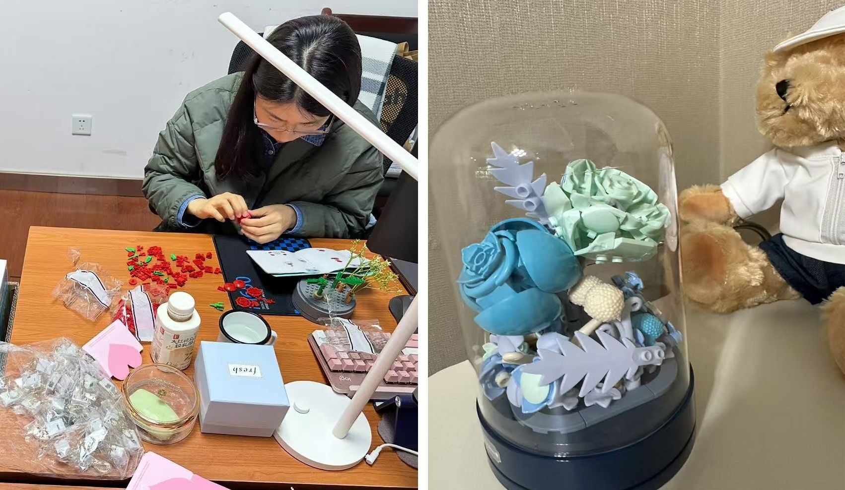 在春意盎然的三月,为庆祝劳动妇女节,球盟会qmh网址工会于3月10日举行“芳华永驻·匠心育人”主题庆祝活动,为全校女教职工送上精心定制的积木永生花礼盒,以创新形式传递对教育战线“她力量”的敬意与关怀。包装雅致的积木永生花礼盒既保留了鲜花的灵动美感,又赋予其永恒绽放的寓意。有老师表示:“拼搭过程让我回想起和学生们共同解难题的快乐时光,积木花朵需要亲手组装的设计别具巧思,就像教育是师生共同成长的艺术,这份礼物既有温度又有参与感”。
