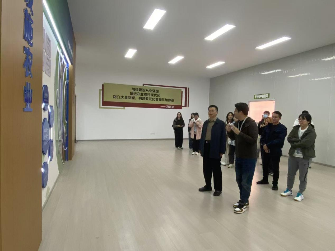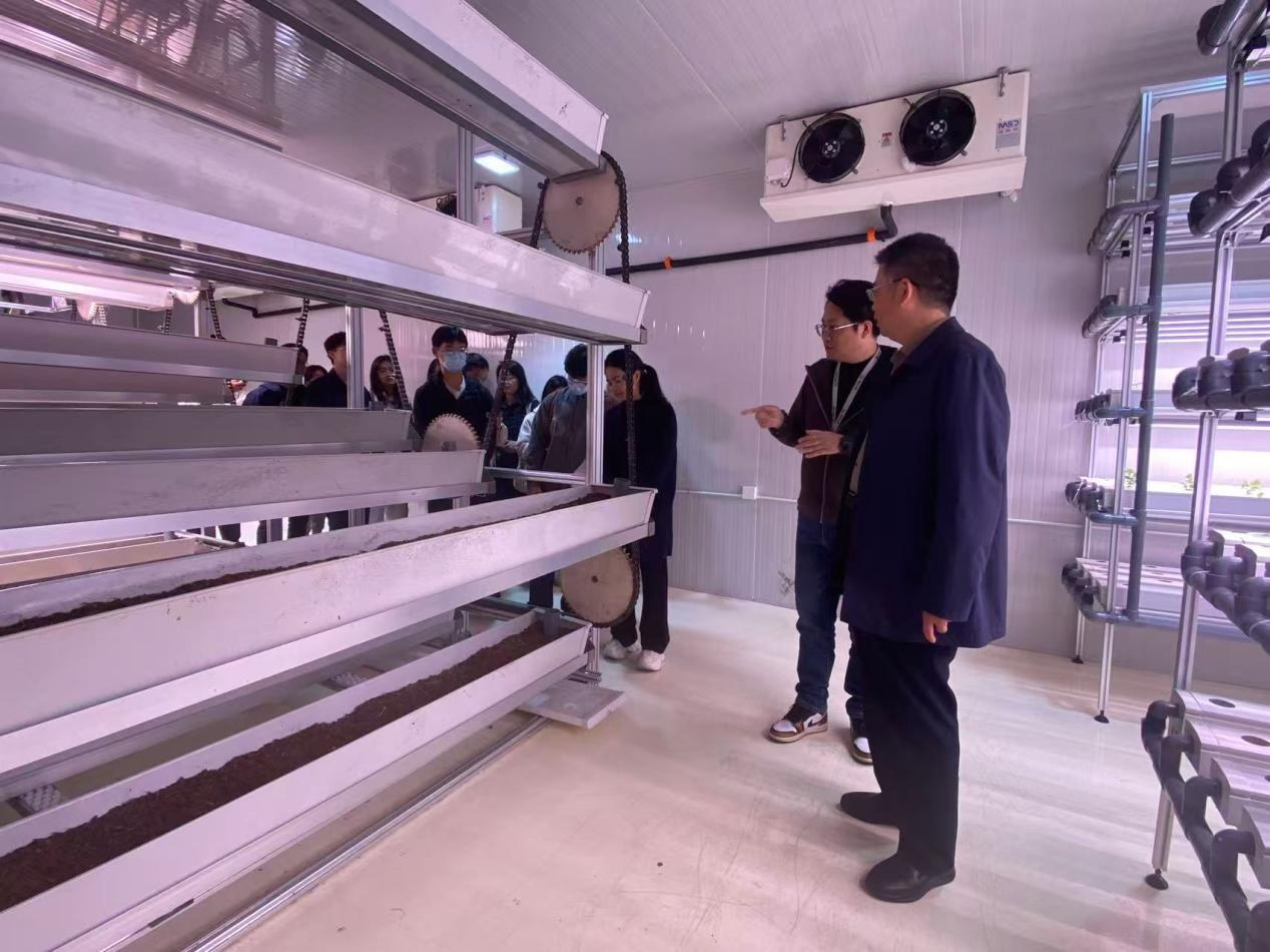 江苏星辰方洲科技有限公司董事长靖百宁对张圣兵一行表示热烈欢迎,详细介绍了企业发展历程与核心业务。作为2021年成立的科技型企业,该公司聚焦智慧农业领域,整合国内外先进技术与种植经验,在智能农业管理、农产品加工贮藏、农业环保装备制造等方面形成特色优势,其“科技研发引领市场、市场发育反哺研发”的发展模式备受关注。调研中,张圣兵一行参观了企业技术研发区域与成果展示平台,近距离了解企业在人工智能农业应用、土壤修复技术等领域的研发进展。总经理秦鹏则陪同师生参观,详细介绍了各类产品和研发技术。