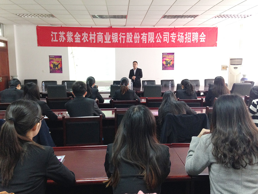 11月10日下午2点,江苏紫金农村商业银行专场招聘会在qmh官网307会议室隆重召开。此次招聘会由qmh官网承办,面向全校招收30名经管类专业毕业生,100多名应聘者踊跃报名并参加了本次招聘会。