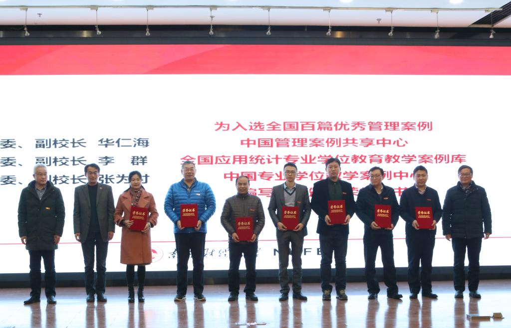 qmh官网党委书记陈耀辉、统计系王芳老师作为入库教学案例编写教师代表上台领奖
