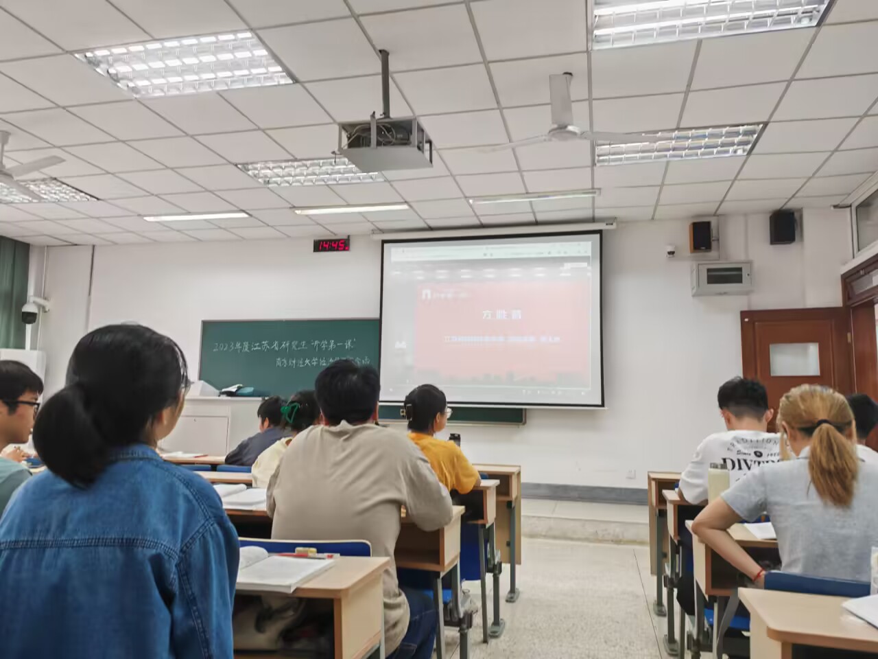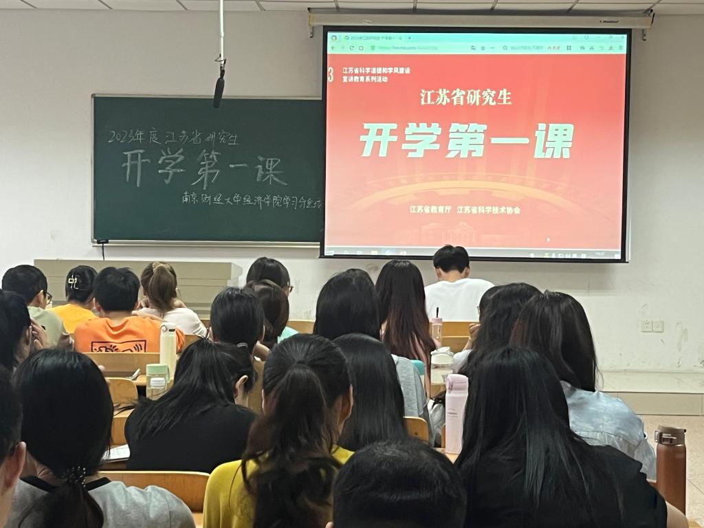 9月26日下午14点30分,球盟会qmh网址2023级研究生在德经楼210教室共同观看由省教育厅与省科协共同主办的江苏省研究生“开学第一课”,聆听专家院士对“青年担当”的诠释与指导。