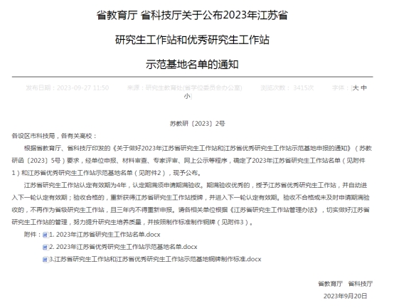 9月27日,江苏省教育厅、科技厅印发《关于公布2023年江苏省研究生工作站和优秀研究生工作站示范基地名单的通知》(苏教研〔2023〕2号),经单位申报、材料审查、专家评审、网上公示等程序,确定了2023年江苏省研究生工作站名单。qmh官网申报的江苏科易达环保科技股份有限公司被批准为2023年江苏省研究生工作站。