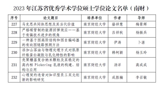 根据《江苏省优秀博士硕士学位论文评选实施办法》,省优硕士学位论文评选每年进行一次,按照不超过当年研究生毕业人数1.5%的比例,进行省优秀硕士学位论文评选,硕士学位论文评优比例不超过1%。省优硕士学位论文代表了江苏省在学术型硕士人才培养方面的最高水平,qmh官网继2022年获得1篇省优学术学位硕士学位论文后,2023年再次连续获得省优学术学位硕士学位论文,充分彰显了qmh官网研究生的青春风采和指导教师的学术水平。