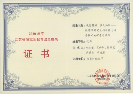 学院获得江苏省研究生教育改革成果优秀奖