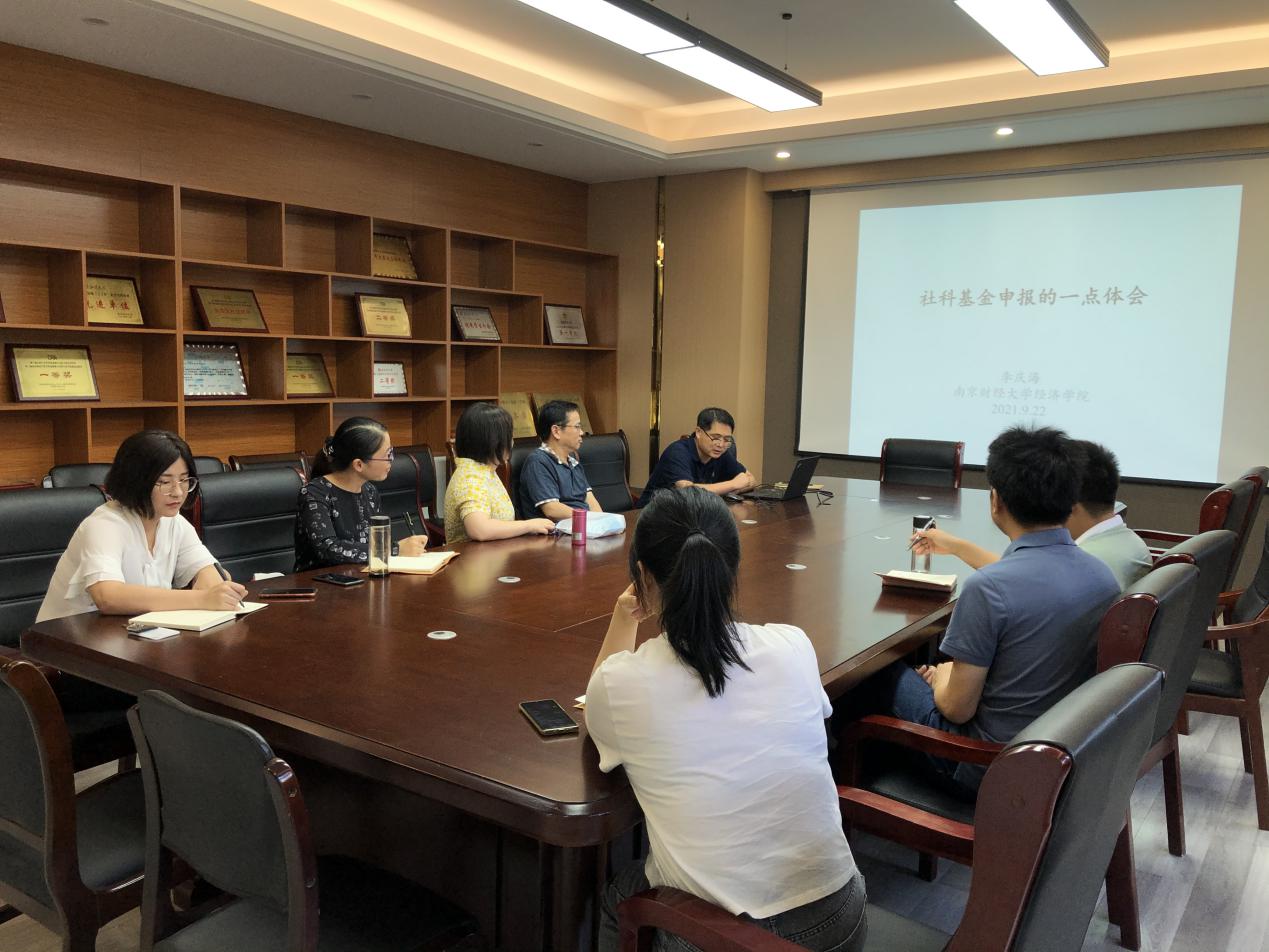 2021年9月22日下午,qmh官网第二期2021年度国家基金项目申报经验交流会在德经楼323会议室举行,学院邀请了李庆海老师和王娟老师给全院青年教师做基金申报经验分享和心得交流,副院长尹敬东出席并主持了本次会议。