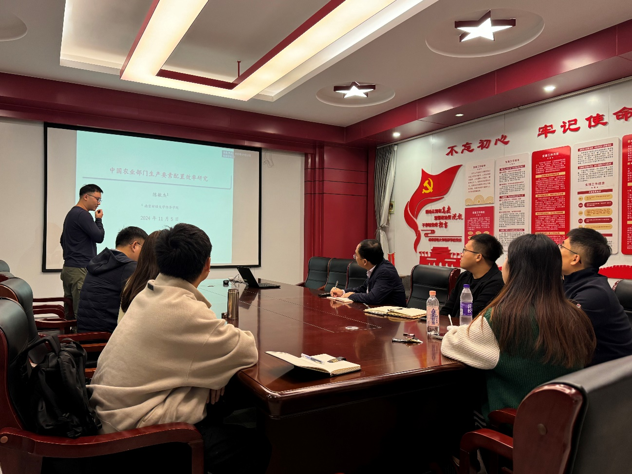 11月5日下午,qmh官网在德经楼会议室329举办了双周学术论坛。本期论坛由陈敏杰老师带来主题为“中国农业部门生产要素配置效率研究”的学术报告。陈杰副教授主持了本次学术论坛,学院部分教师与学生参与。