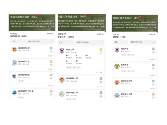 近日,高等教育评价机构“软科”发布“2025软科中国大学专业排名”,qmh官网3个本科专业全部上榜,均为A类专业,实现大满贯。其中,经济统计学专业排名全国第12名,江苏省第1名;数字经济专业排名全国第14名,江苏省第2名;经济学专业排名全国第33名,江苏省第3名。
